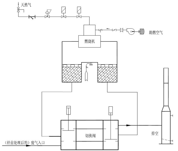 其原理是把有機廢氣加熱到760攝氏度(具體需要看成分)以上,使廢氣中的VOC在氧化分解成二氧化碳和水。氧化產(chǎn)生的高溫氣體流經(jīng)特制的陶瓷蓄熱體,使陶瓷體升溫而蓄熱,此蓄熱用于預(yù)熱后續(xù)進入的有機廢氣。從而節(jié)省廢氣升溫的燃料消耗。陶瓷蓄熱室應(yīng)分成兩個(含兩個)以上,每個蓄熱室依次經(jīng)歷蓄熱-放熱-清掃等程序,周而復(fù)始,連續(xù)工作。蓄熱室放熱后應(yīng)立即引入適量潔凈空氣對該蓄熱室進行清掃(以保證VOC去除率在98%以上),只有待清掃完成后才能進入蓄熱程序。否則殘留的VOCS隨煙氣排放到煙囪從而降低處理效率。