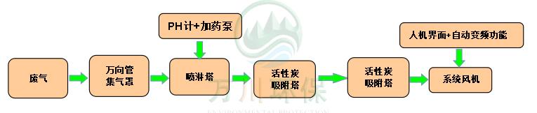 整體工藝符合防爆防腐蝕耐酸堿的標準要求,具有運行成本低、廢氣處理高效、操作簡單、安裝方便、使用壽命長等特性。
