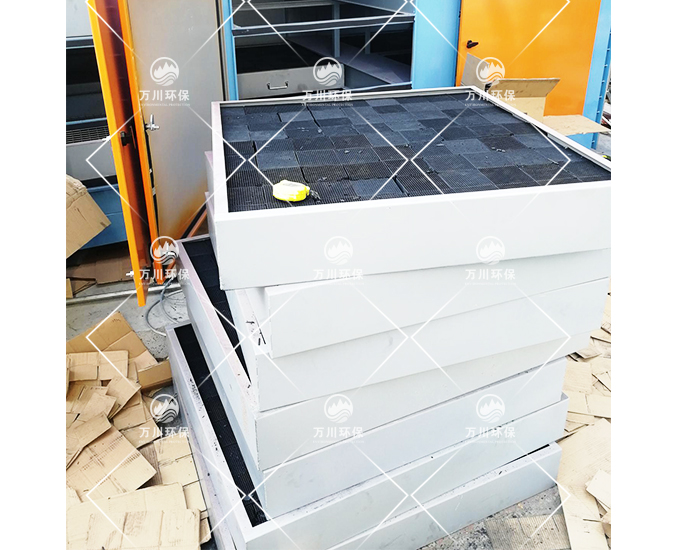 2.塔體設(shè)計交流錯位過風(fēng),過風(fēng)面積大,阻力較小,采用抽屜式設(shè)計,更換活性炭非常方便,且流速均勻,吸附效率高。