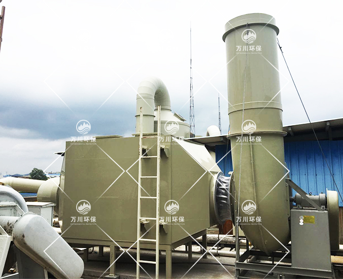 由于廢氣中含有一定的顆粒物,因此廢氣首先進(jìn)到噴淋塔在進(jìn)一步除去顆粒物和水溶性物質(zhì),而后進(jìn)入到除霧器,過濾未完全凈化水分,而后進(jìn)入UV光氧凈化器,最后再進(jìn)行活性炭吸附裝置,該法具有處理效果高,運行穩(wěn)定優(yōu)點。