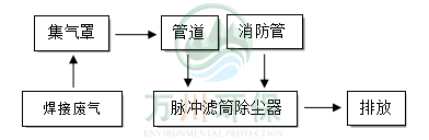 工程師根據(jù)現(xiàn)場焊接煙塵性質(zhì)、粒徑、現(xiàn)場工況等因素考量,故采用脈沖濾筒除塵器作為處理設(shè)備