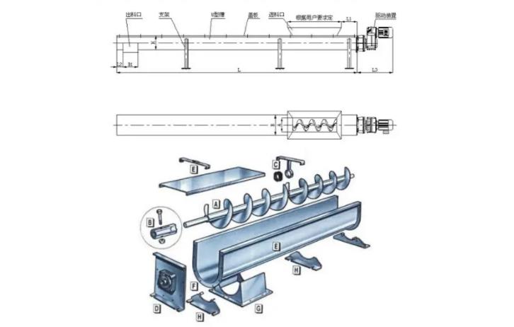 二、槽型螺旋輸送機主要結構。